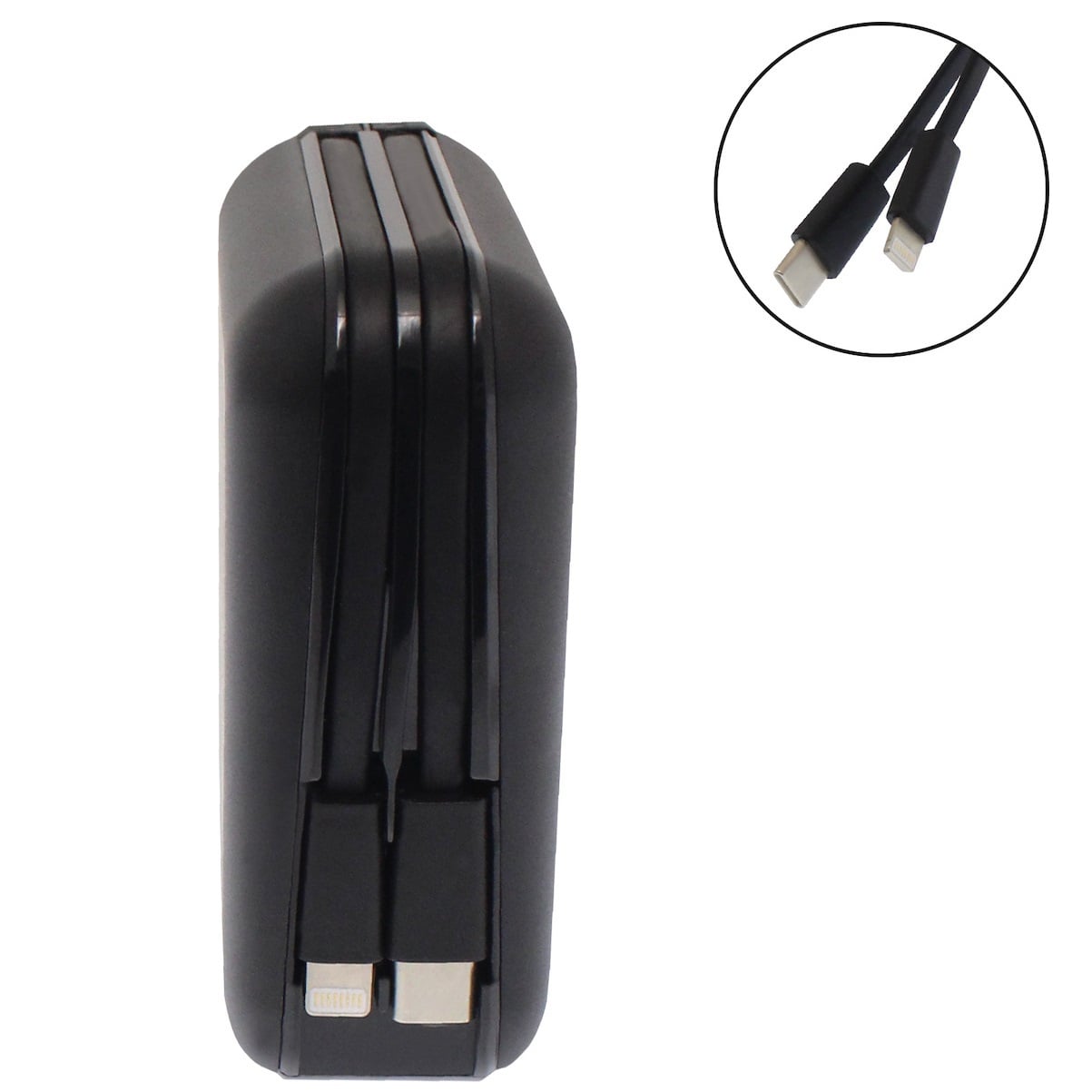 Είναι εξοπλισμένο με καλώδιο Type-C και Lightning (κοινώς φορτιστής για iPhone) τα οποία είναι ενσωματωμένα πάνω στην συσκευή. Έτσι ποτέ δεν θα ξεχάσετε να έχετε τα καλώδια μαζί σας!