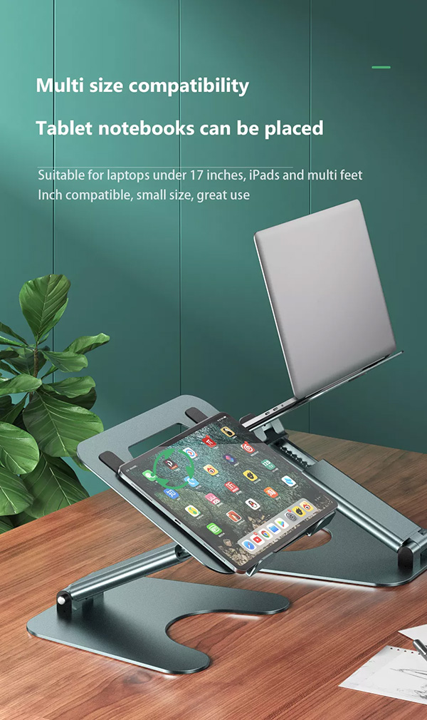 AWEI® Πτυσσόμενη Αναδιπλούμενη Αντιολισθητική Βάση Αλουμινίου για Λάπτοπ & Τάμπλετ με Διπλή Ρυθμιζόμενη Κλίση
