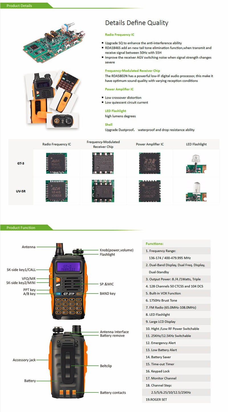 Baofeng Πομποδέκτης Δύο Δρόμων Dual Band UHF/VHF 8W Υψηλή Ισχύς GT-3TP