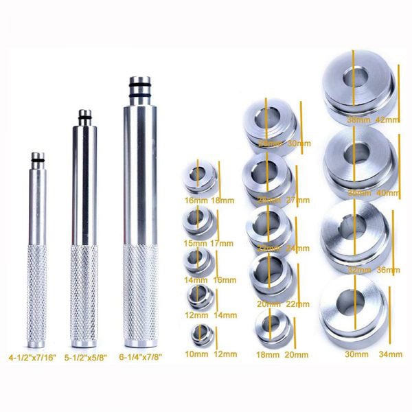 - 3 x μεγέθη οδηγών διαμέτρου ⌀11.3mm που χρησιμοποιούνται με ένα μικρό σφυρί ώστε να εισάγουμε τις τσιμούχες χωρίς φθορές στα δισκόφρενα