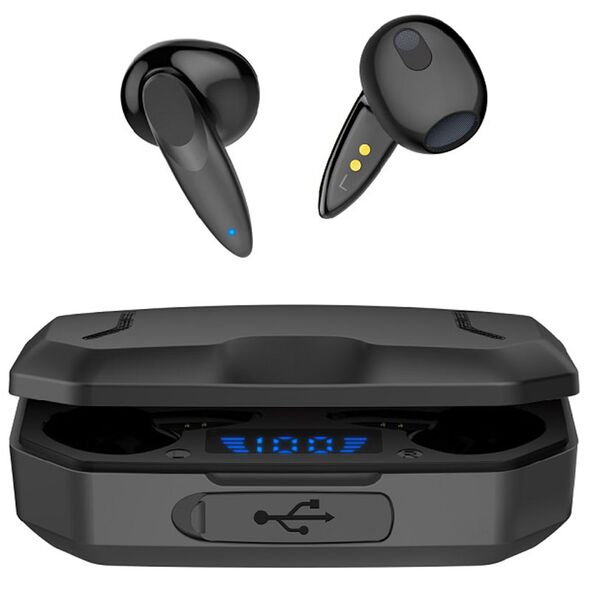 Bluetooth Ακουστικά in-Ear με Θήκη Φόρτισης & LED Οθόνη - Max Earbud Bluetooth Handsfree TN73 Μαύρο