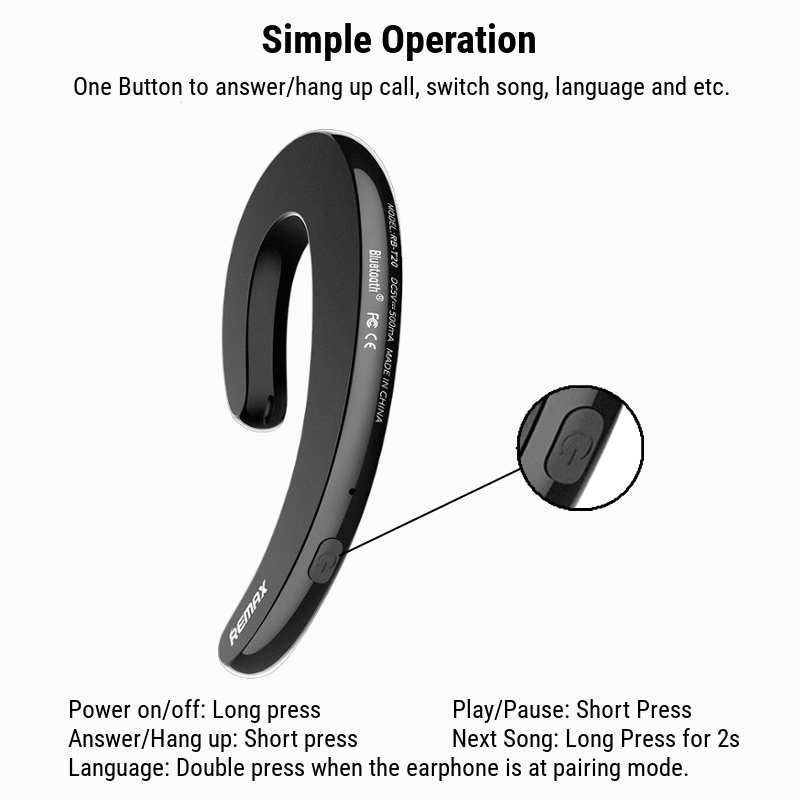 Bluetooth Ακουστικό Remax RB-T20 Ultrathin Earhook-Bluetooth Handsfree V4.1