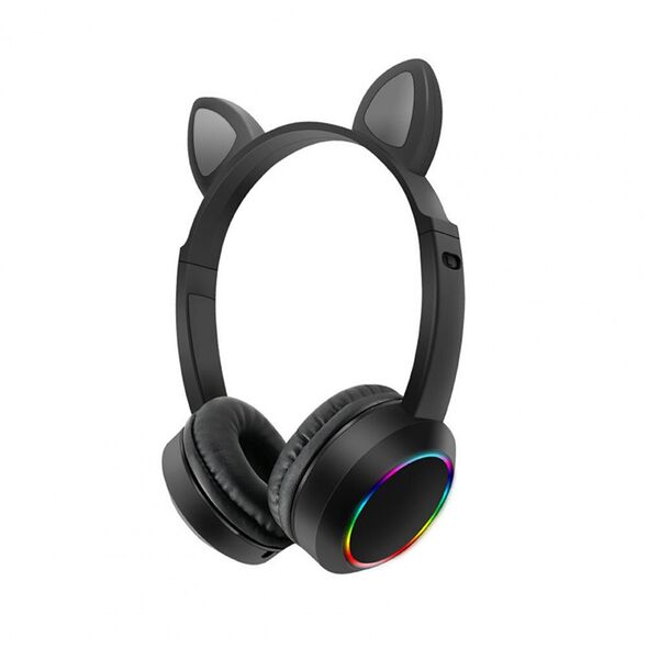 Bluetooth Ασύρματα Ακουστικά Αυτιά Γάτας με Πολύχρωμα Φώτα RGB & Ενσωματωμένο Μικρόφωνο - Wireless Cat Ear Headphones AKZ-K24 Μαύρα
