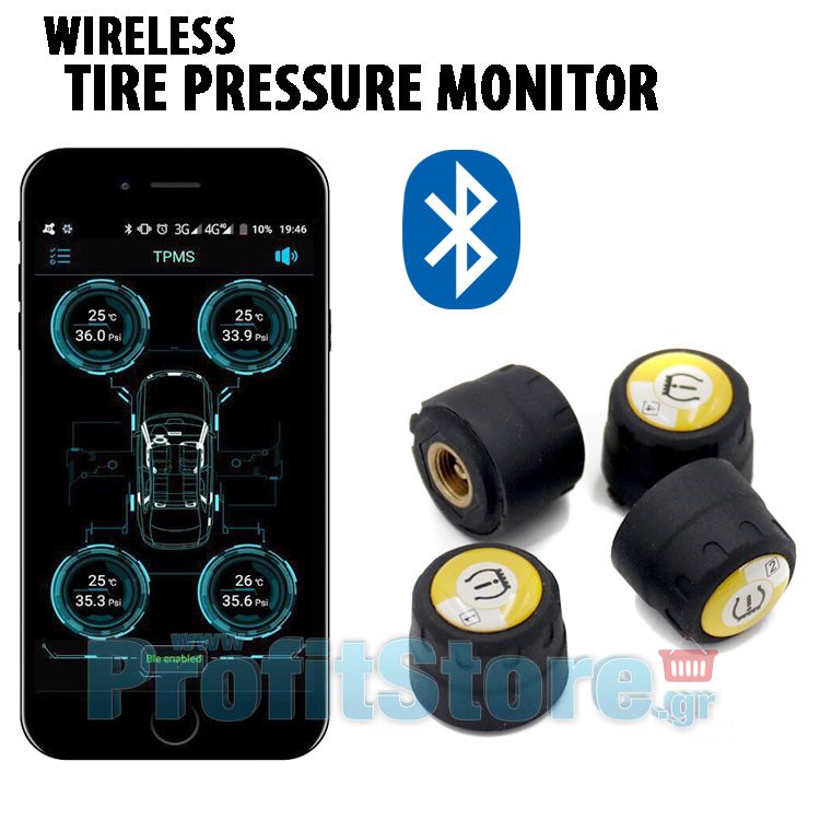 Σας φέραμε αυτό το Bluetooth ασύρματο Σύστημα Μέτρησης Πίεσης Ελαστικών που παρουσιάζει σε πραγματικό χρόνο την πίεση και την θερμοκρασία των ελαστικών στο κινητό σας τηλέφωνο!