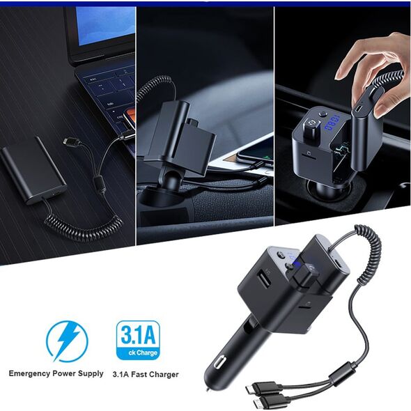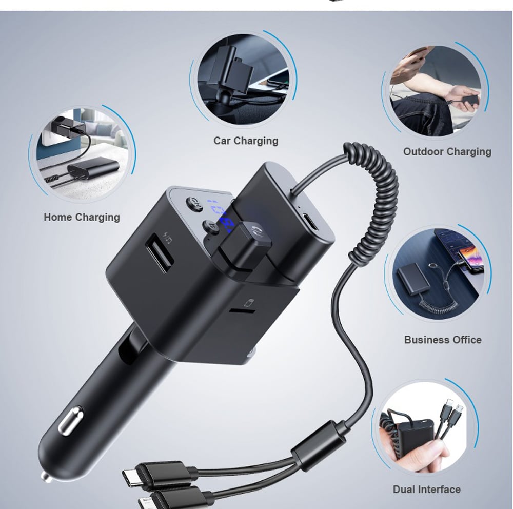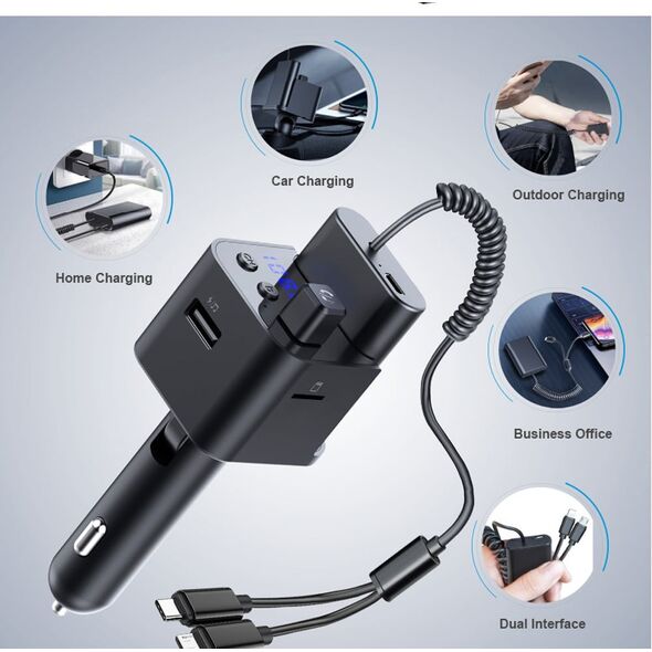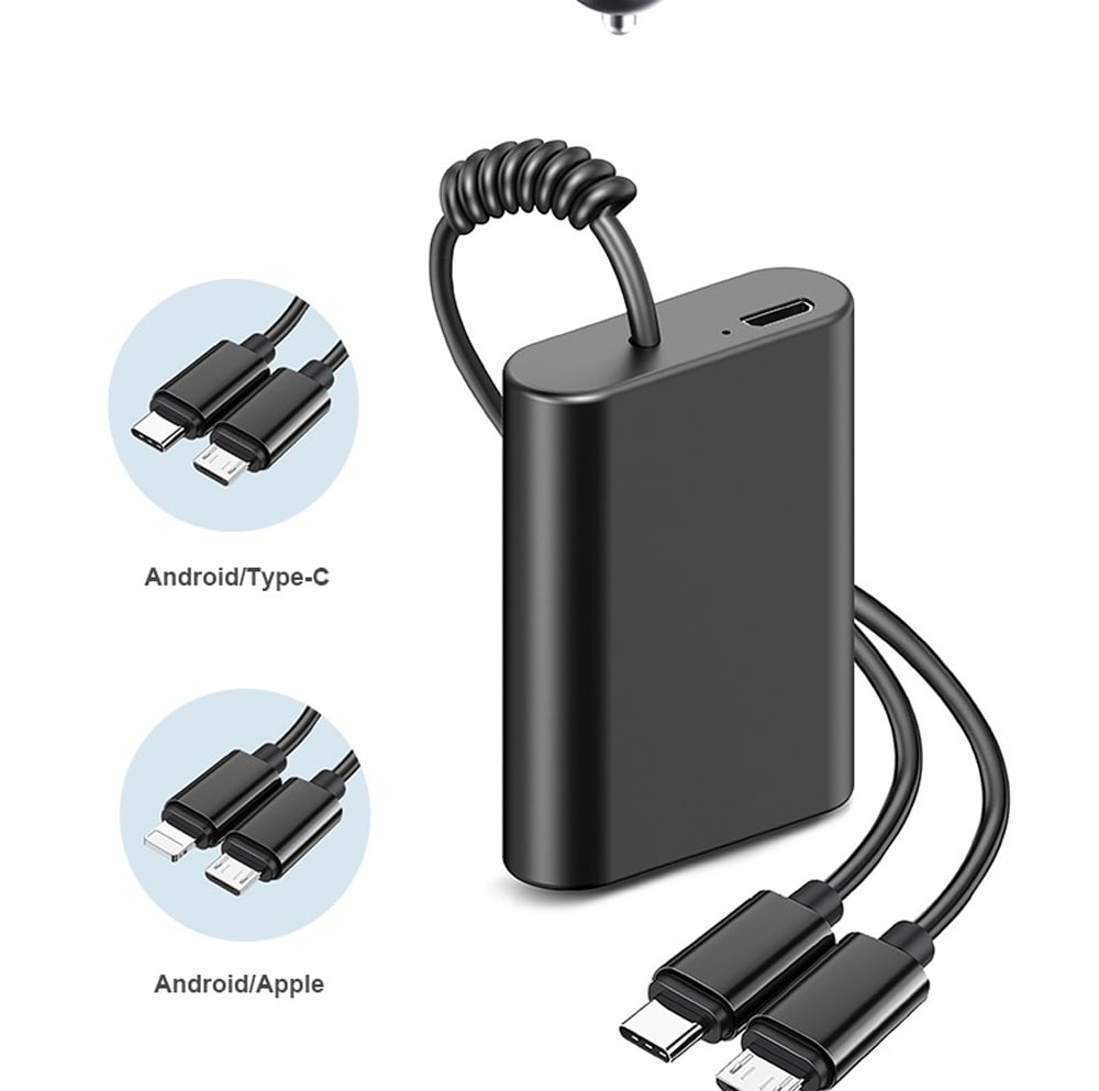 Όμως, αυτό το fm transmitter αυτοκινήτου, διαθέτει και ένα super mini power bank - φορητή μπαταρία, για να φορτίζετε το κινητό σας, κάθε στιγμή! Η συσκευή έχει ειδικό slot φόρτισης του power bank για να είναι πάντα έτοιμο να δώσει στο κινητό σας την ώθηση που του χρειάζεται. Ακόμη, το Powerbank διαθέτει ανθεκτικό σπιράλ καλώδιο που καταλήγει σε βύσματα Micro USB και Lightning (Apple συσκευές).