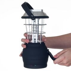 Πολυχρηστικό φανάρι - φωτιστικό LED, μεγάλης φωτεινότητας και αυτονομίας. Φορτίζει από τον ήλιο, από το ρεύμα, αλλά και με μανιβέλα! Μπορεί επίσης να λειτουργήσει και με 3 μπαταρίες AA. Ιδανικό για την εξοχή, το camping, το σκάφος, το αυτοκίνητο.