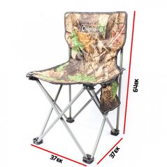 Ελαφρύ, αναδιπλούμενο καρεκλάκι ύψους 60 εκατοστών σε χρώμα παραλλαγής με αποθηκευτική θήκη - τσέπη, ιδανικό για το κυνήγι ή το ψάρεμα.