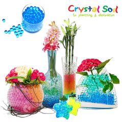 Αντικαθιστούν το νερό στα βάζα και στις γλάστρες σας. Όταν βυθιστούν σε νερό το απορροφούν και αυξάνουν το μέγεθος τους έως 150 φορές ! Κατόπιν το απελευθερώνουν με αργούς ρυθμούς ώστε τα φυτά και τα λουλούδια σας να έχουν όσο χρειάζεται.