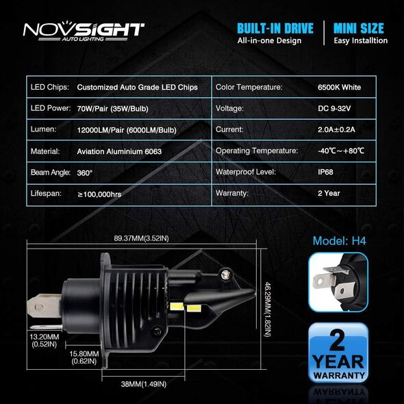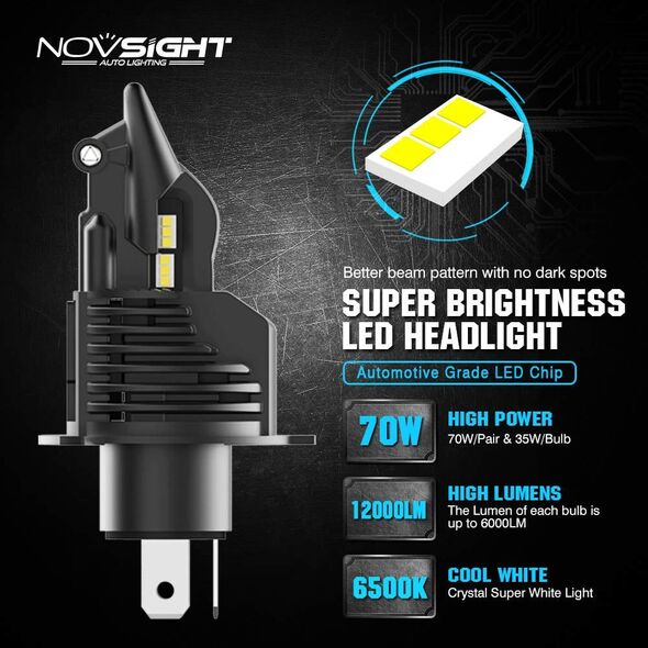 Compact PNP LED Λάμπες Αυτοκινήτου Novsight H4 60W 8000Lm 6500K - Car LED Headlights