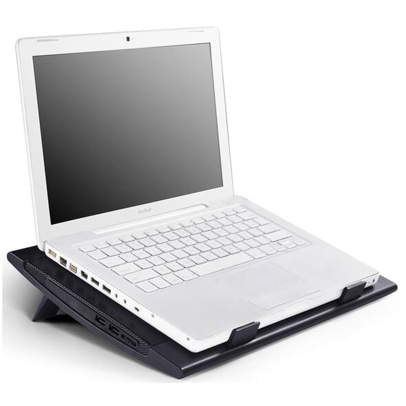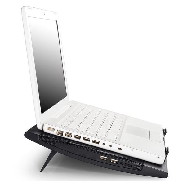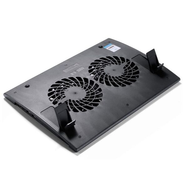Πρωτοποριακή βάση για φορητό υπολογιστή με την εγγύηση ποιότητας της DEEPCOOL®! Εξοπλισμένο με 2 θύρες USB και 2 ανεμιστήρες των οποίων την ταχύτητα μπορείτε να ρυθμίσετε. Με ρυθμιζόμενα ποδαράκια και αντιολισθητικό σχεδιασμό!