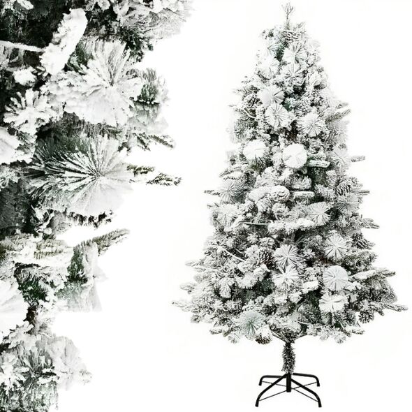 Deluxe 180 εκ. Χιονισμένο Χριστουγεννιάτικο Δέντρο με Μεταλλικό Σκελετό & Στολισμένο με Κουκουνάρια