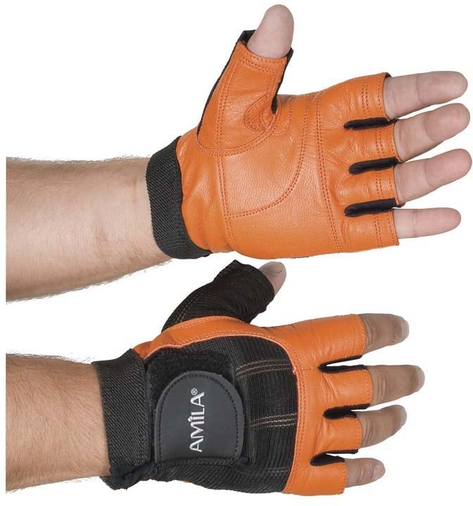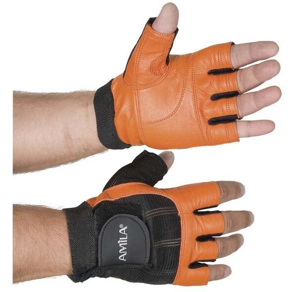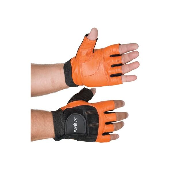 Δερμάτινα Γάντια Γυμναστικής Amila® Nubuk Μαύρο / Πορτοκαλί M