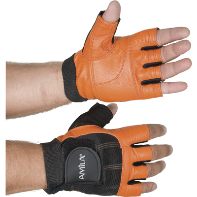 Δερμάτινα Γάντια Γυμναστικής Amila® Nubuk Μαύρο / Πορτοκαλί M