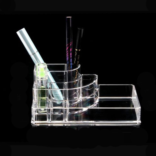 Είναι κατασκευασμένος από διάφανο ακρυλικό plexiglass πολύ ανθεκτικό. Το σχέδιο της είναι σε σχήμα ορθογώνιο με μικρές θήκες και ένας μεγαλύτερος ελεύθερος χώρος στα δεξιά, για να τοποθετήσετε οτιδήποτε θέλετε!