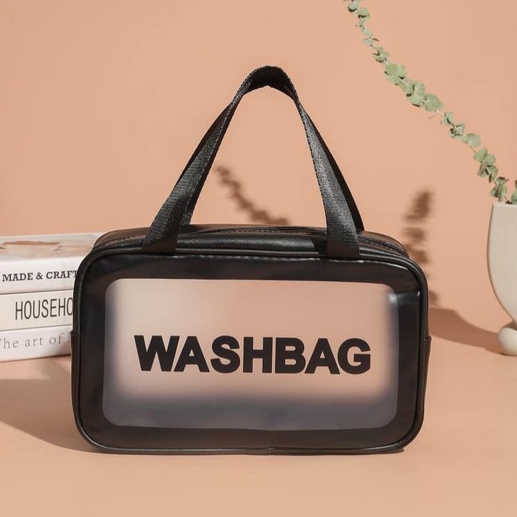 Διαφανής Αδιάβροχη Θήκη - Τσάντα για Καλλυντικά Μεγάλη 35x26x10cm - Waterproof Travel Makeup Bag Μαύρο