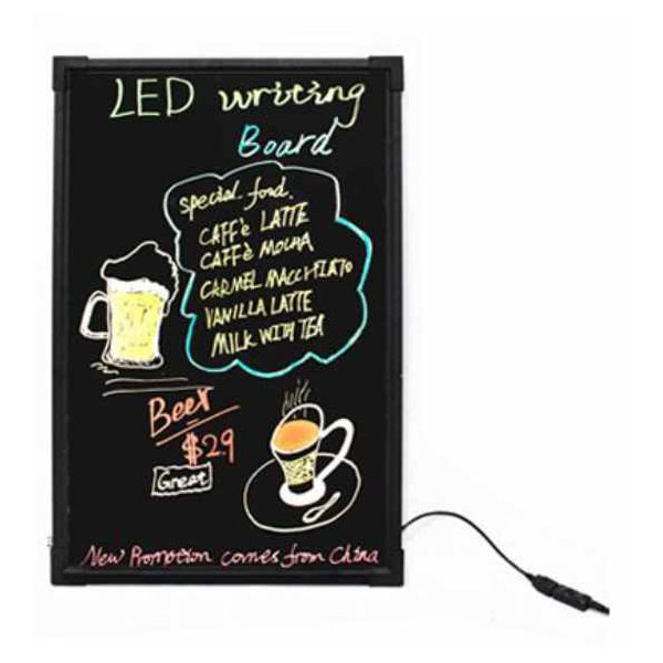 Ο διαφημιστικός φωτιζόμενος πίνακας LED διαστάσεων 60x40 εκατοστών είναι ιδανικός για την προβολή μηνυμάτων και προσφορών σε καταστήματα, εστιατόρια, καφετέριες και άλλους επαγγελματικούς χώρους. Η επιφάνειά του είναι σχεδιασμένη για χρήση με φωσφορίζοντες μαρκαδόρους υγρής κιμωλίας, επιτρέποντας τη δημιουργία εντυπωσιακών και ευδιάκριτων επιγραφών που φωτίζονται ομοιόμορφα χάρη στην ενσωματωμένη τεχνολογία LED.