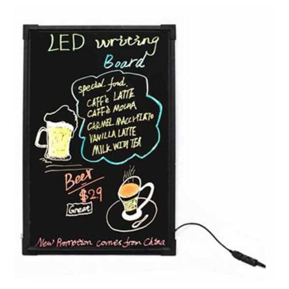 Ο διαφημιστικός φωτιζόμενος πίνακας LED διαστάσεων 80x60 εκατοστών είναι ιδανικός για την προβολή μηνυμάτων και προσφορών σε καταστήματα, εστιατόρια, καφετέριες και άλλους επαγγελματικούς χώρους. Η επιφάνειά του είναι σχεδιασμένη για χρήση με φωσφορίζοντες μαρκαδόρους υγρής κιμωλίας, επιτρέποντας τη δημιουργία εντυπωσιακών και ευδιάκριτων επιγραφών που φωτίζονται ομοιόμορφα χάρη στην ενσωματωμένη τεχνολογία LED.