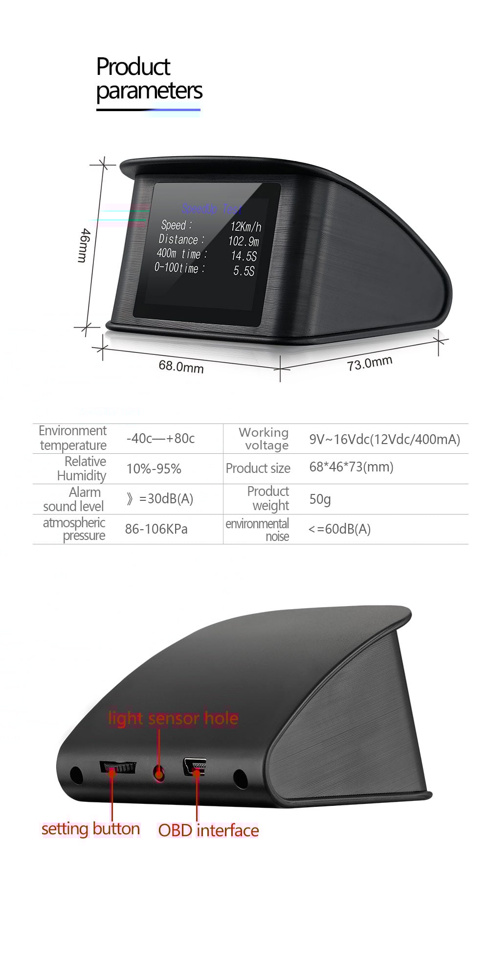 Διαγνωστικό αυτοκινήτου με ψηφιακή οθόνη HD HUD για το ταμπλό του αυτοκινήτου με πληθώρα λειτουργιών.