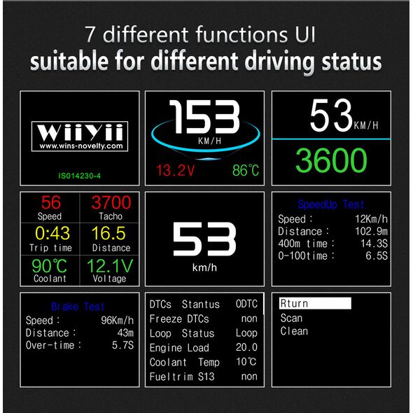 Διαγνωστικό αυτοκινήτου με ψηφιακή οθόνη HD HUD για το ταμπλό του αυτοκινήτου με πληθώρα λειτουργιών.
