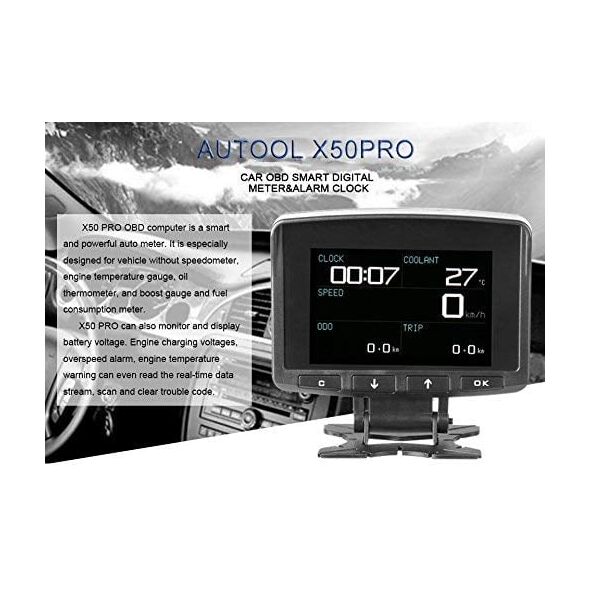 Διαγνωστικό Βλαβών & Μετρητής OBD II με Οθόνη Πολλαπλών Ενδείξεων Ταμπλό HUD Αυτοκινήτου - Θερμόμετρο, Βολτόμετρο, Ταχύμετρο Autool X50 PRO