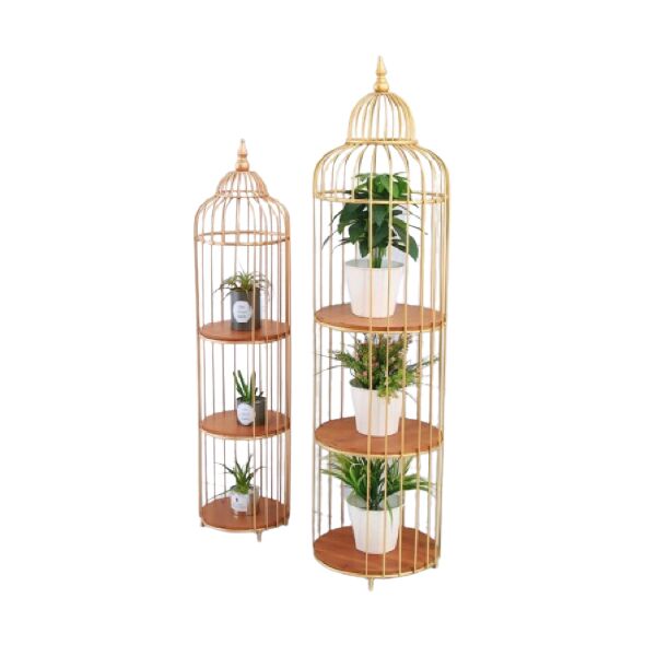 Διακοσμητικά μεταλλικά κλουβιά με τρία ξύλινα ράφια αποτελούν μία εξαιρετική επιλογή για να τοποθετείτε και να προβάλλετε τα φυτά σας και άλλα διακοσμητικά αντικείμενα.