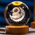 Διακοσμητική Κρυστάλλινη Σφαίρα - Φωτιστικό με Αστροναύτη στο Φεγγάρι σε Ξύλινη Βάση και Θερμό Λευκό Φωτισμό LED