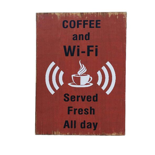 Διακοσμητική Ξύλινη Πινακίδα (30Χ40cm) Coffee Wifi