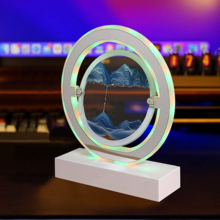 Η περιστρεφόμενη κατασκευή της επιτρέπει την παρακολούθηση της άμμου από διάφορες γωνίες, ενώ ο φωτισμός και η μουσική την καθιστούν ιδανική για το υπνοδωμάτιο, το γραφείο ή το σαλόνι.