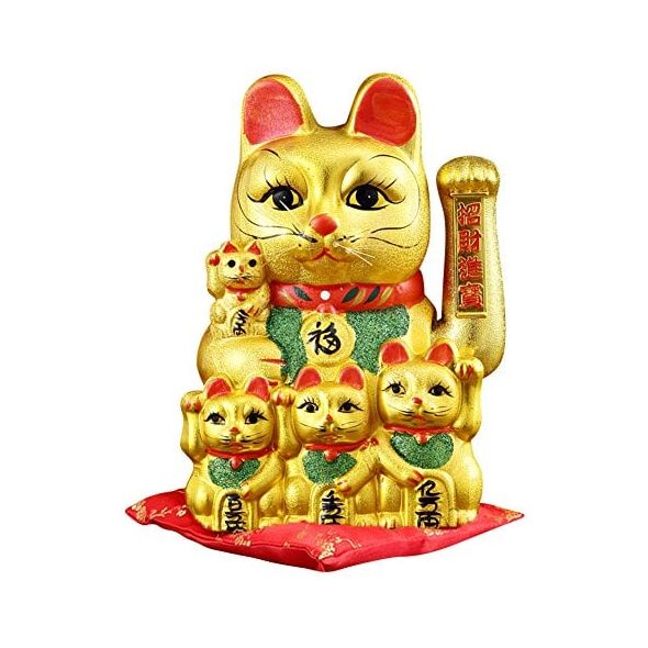 Η χαμογελαστή γάτα με το υπερυψωμένο πόδι προσελκύει πλούτο, καλή τύχη, ευημερία και καλωσορίζει στο χώρο σας φίλους ή νέα πελατεία (αν πρόκειται για χώρο εργασίας).