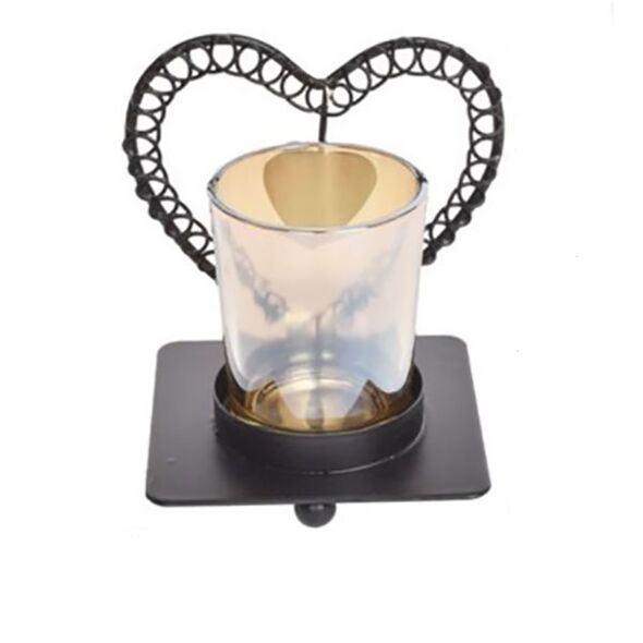 Διακοσμητικό Επιτραπέζιο Κηροπήγιο Καρδιά Μαύρο 9.5×8.5cm