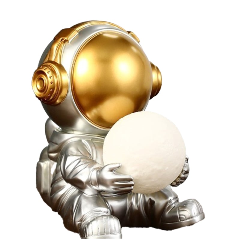 Διακοσμητικό Φως Σπιτιού - Αστροναύτης Άγαλμα / Μινιατούρα με USB & Αποθηκευτικό Χώρο Μικρών Αντικειμένων 14,5 x 16 x 19cm Ασημί / Χρυσό