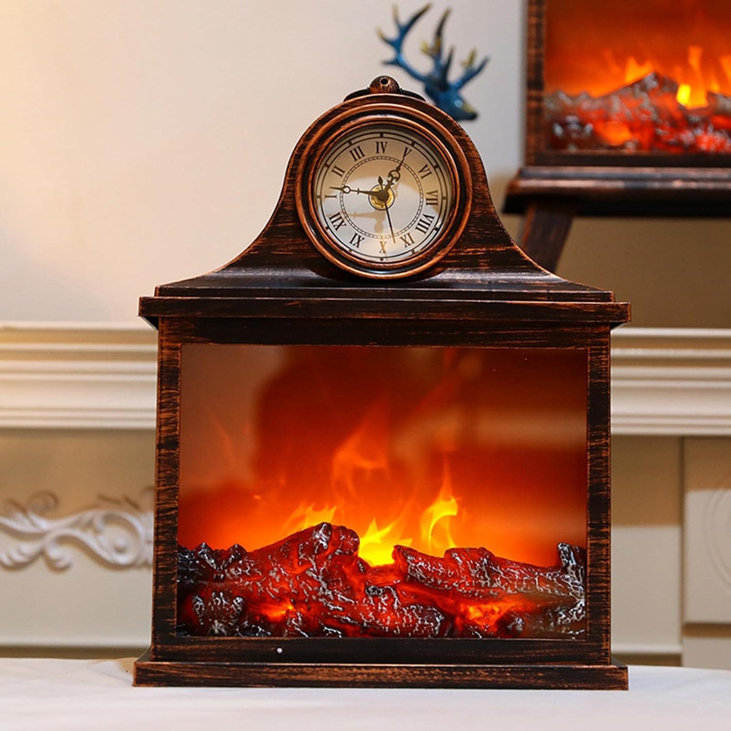 Ζεστάνετε την ατμόσφαιρα του χώρου σας με αυτό το εντυπωσιακό φωτιστικό LED σε μορφή τζακιού, που συνδυάζει ρεαλιστικό εφέ φλόγας με τον κομψό, κλασικό σχεδιασμό ενός ρολογιού.