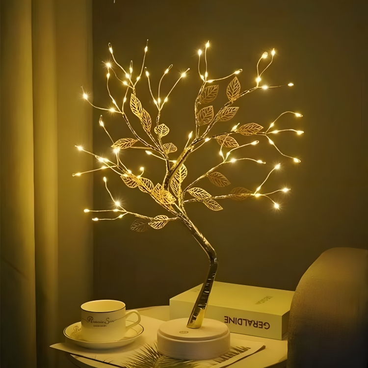 Διακοσμητικό Φωτιζόμενο Δέντρο 50 εκ. με Χρυσά Φύλλα & Θερμό Φωτισμό LED