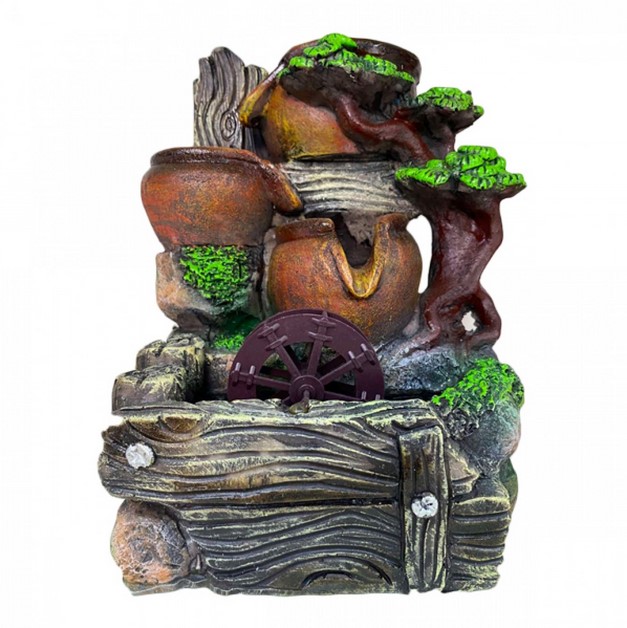 Διακοσμητικό Συντριβάνι Feng Shui με 3 Κιούπια και Ξύλινο Φραχτη 24x16x14εκ