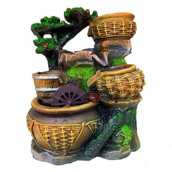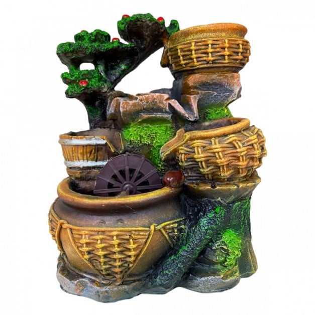 Διακοσμητικό Συντριβάνι Feng Shui με 3 Κιούπια, Βαρέλι και Νερόμυλο 24x16x14εκ