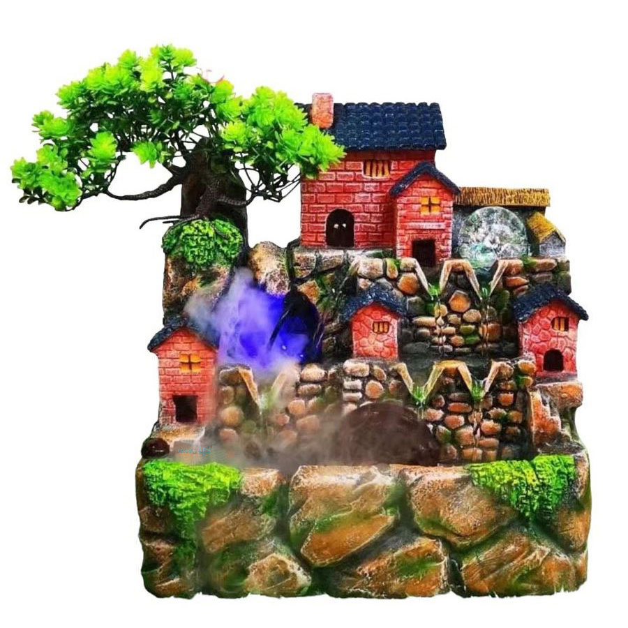 Διακοσμητικό Συντριβάνι Feng Shui με Σπιτάκι, Δέντρο, Τρεχούμενο Νερό και Πολύχρωμο Φωτισμό LED 30x20x31 εκ