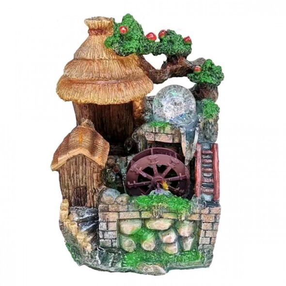 Διακοσμητικό Συντριβάνι Feng Shui με Σπιτάκι, Δέντρο, Τρεχούμενο Νερό & Πολύχρωμο Φωτισμό LED 15x16x27 εκ