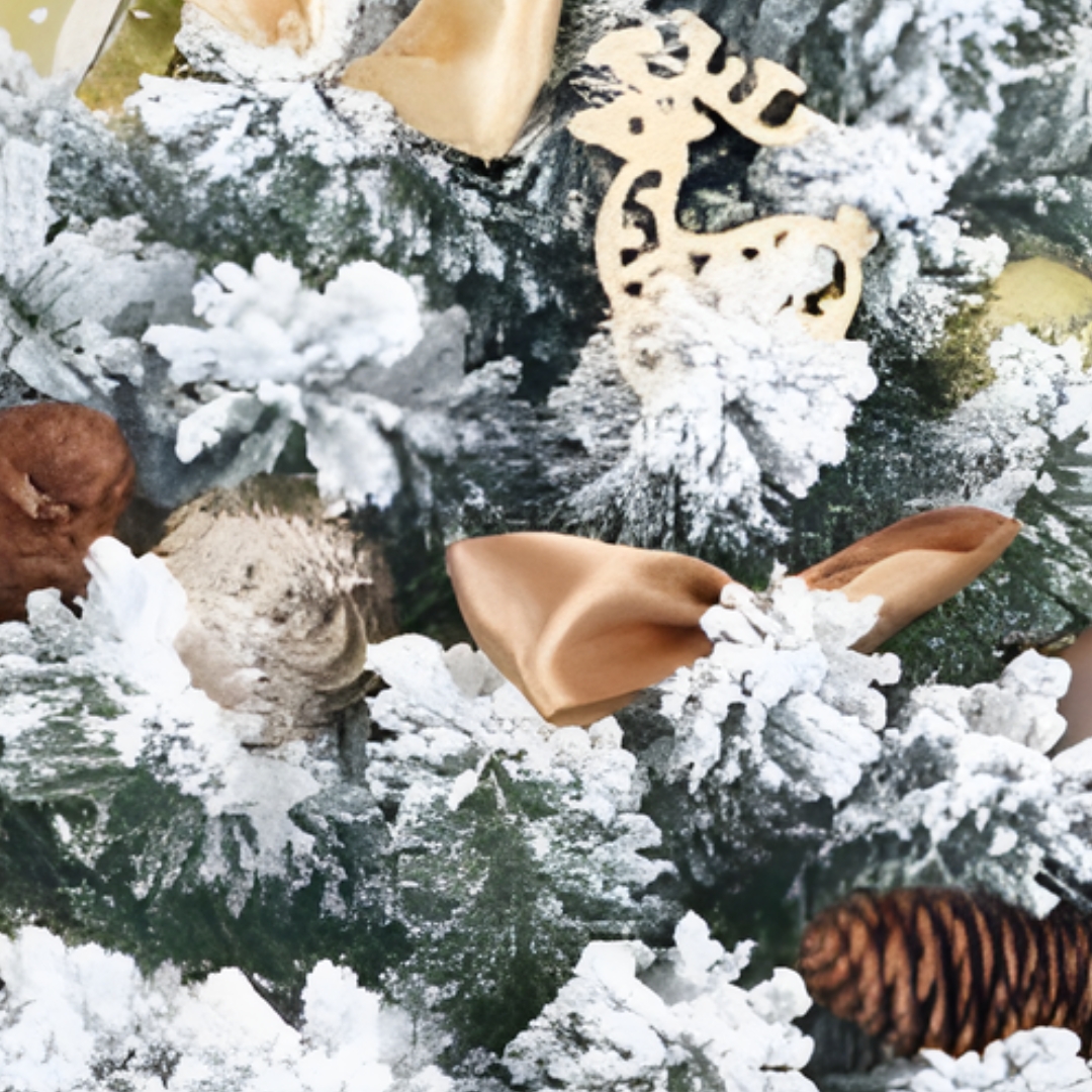 Το διακοσμητικό χιονισμένο χριστουγεννιάτικο δέντρο με τα χρυσά στολίδια φέρνει άμεσα τη θαλπωρή των γιορτών σε κάθε χώρο.