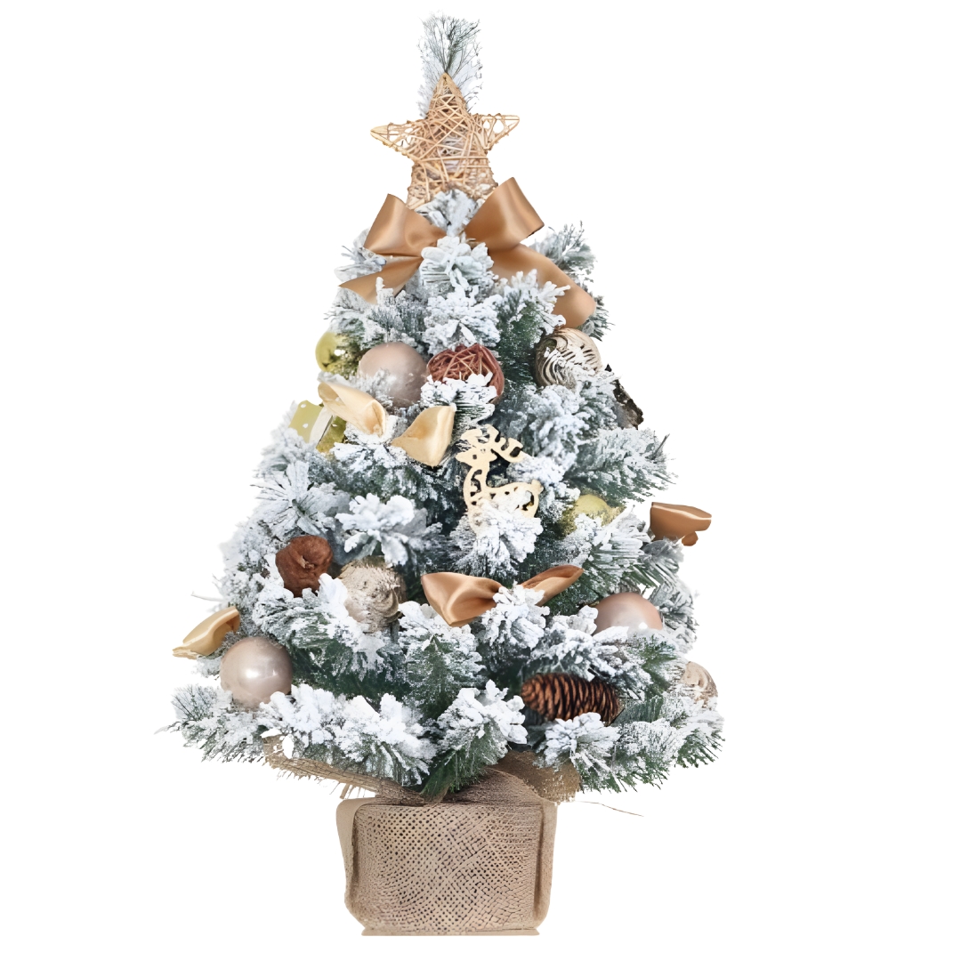Το διακοσμητικό χιονισμένο χριστουγεννιάτικο δέντρο με τα χρυσά στολίδια φέρνει άμεσα τη θαλπωρή των γιορτών σε κάθε χώρο.