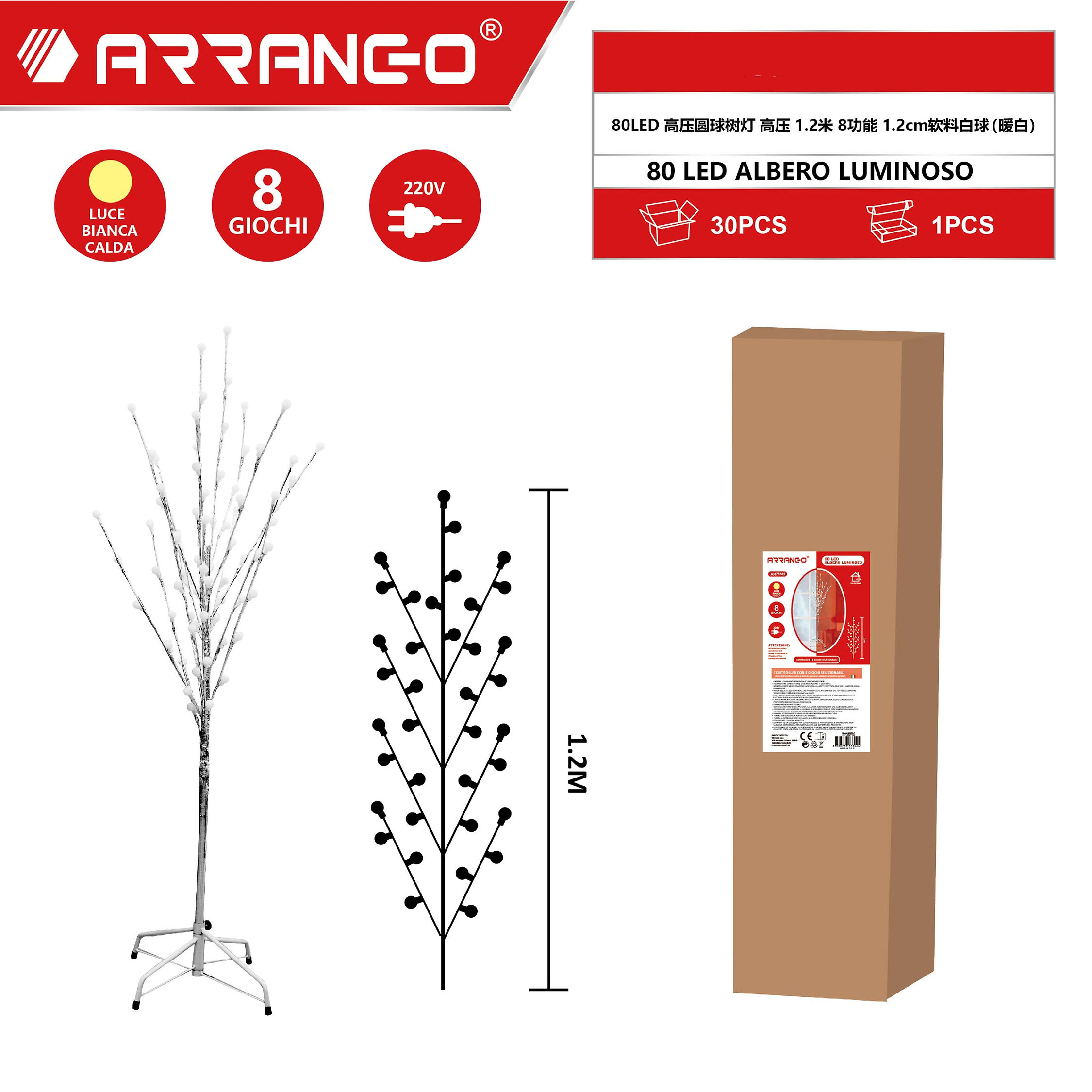Πρόκειται για τεχνητό διακοσμητικό φωτιζόμενο δέντρο, ύψους 120cm, με ενσωματωμένο φωτισμό LED.
