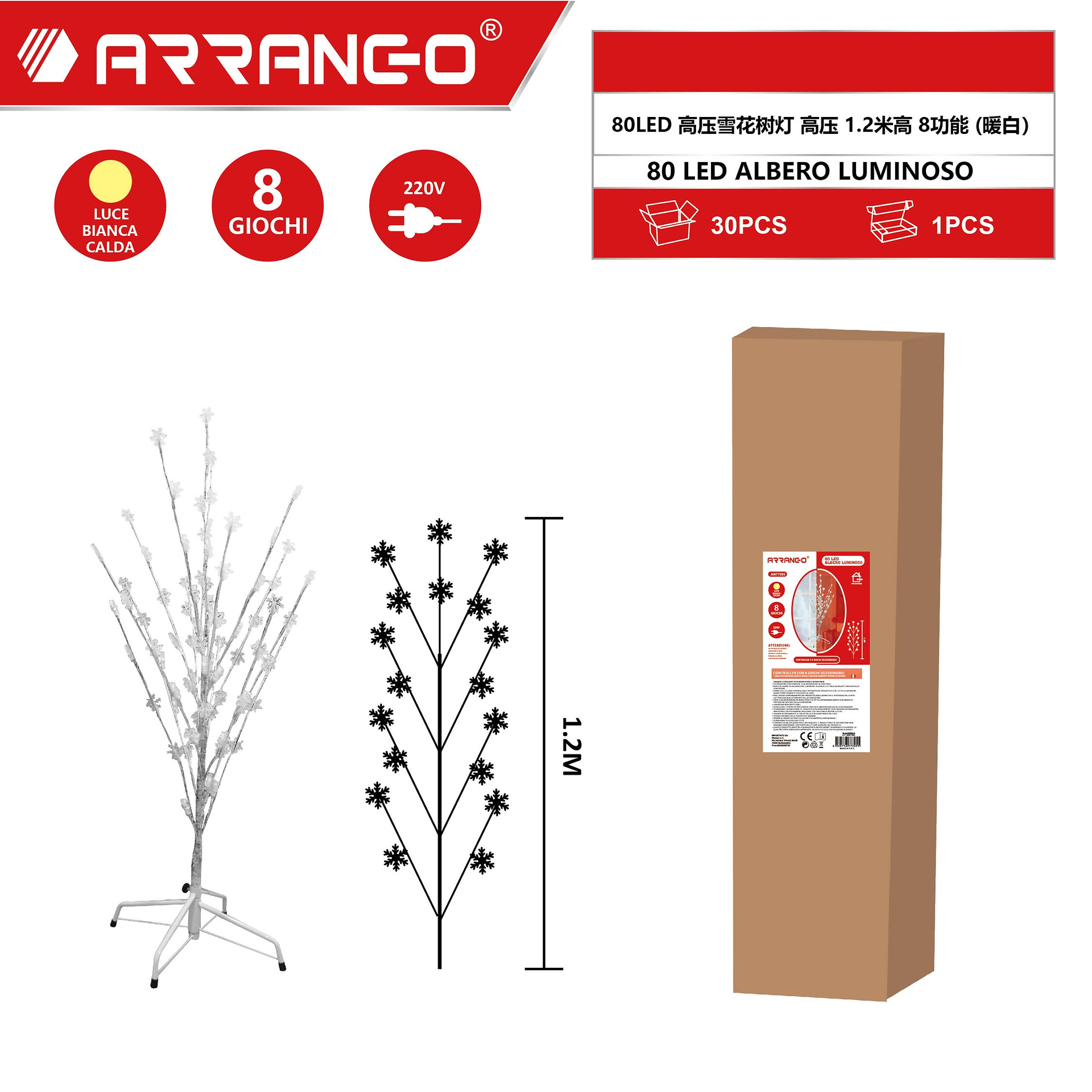 Πρόκειται για τεχνητό διακοσμητικό φωτιζόμενο δέντρο, ύψους 120cm, με ενσωματωμένο φωτισμό LED.