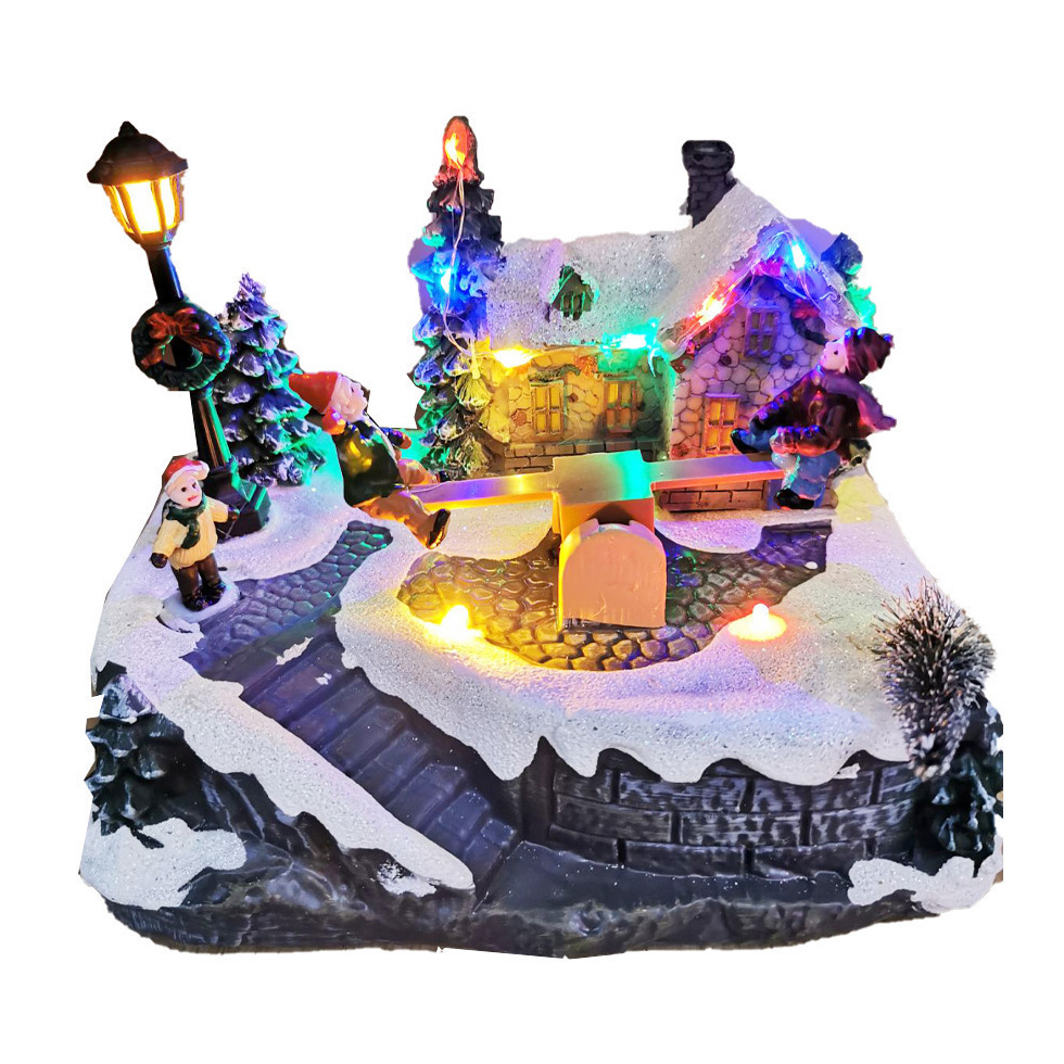 Διακοσμητικό Χριστουγεννιάτικο Φωτιζόμενο Χωριό με Τραμπάλα & Κίνηση 20x14.5x13.5cm