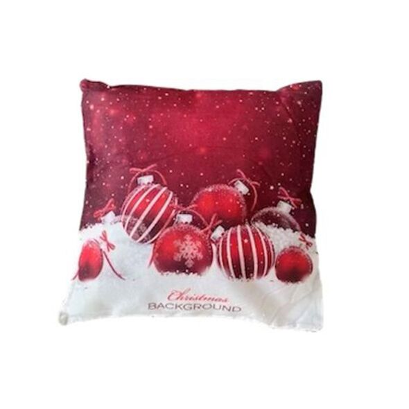Διακοσμητικό Χριστουγεννιάτικο Κόκκινο Μαξιλάρι με σχέδιο Χιονισμένες Χριστουγεννιάτικες Μπάλες μια εκπληκτική προσθήκη για τη διακόσμηση του σπιτιού σας και τη δημιουργία μιας γιορτινής ατμόσφαιρας κατά την περίοδο των Χριστουγέννων.