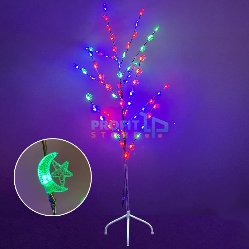 Διακοσμητικό Χριστουγεννιάτικο RGB Φωτιζόμενο Δέντρο 140cm με Αστέρια - Φεγγάρι & Πολύχρωμο LED Φωτισμό