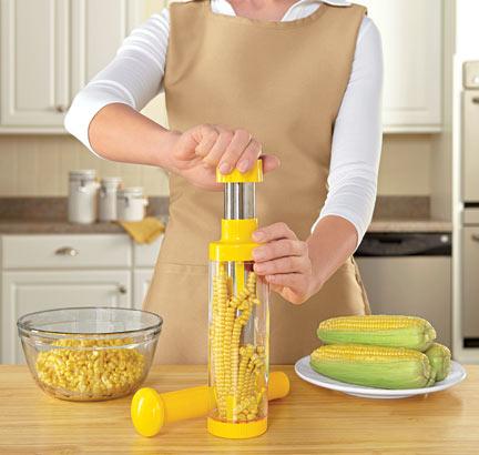 Ιδού λοιπόν το Deluxe Corn Stripper το οποίο αφαιρεί με μία κίνηση τον καρπό του καλαμποκιού και το αποθηκεύει στο ειδικό δοχείο του.