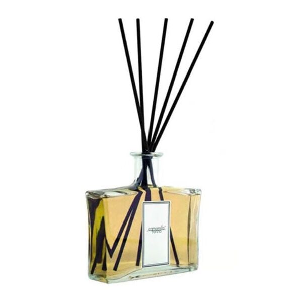 Τρόπος χρήσης: ξεβιδώστε το καπάκι, αφαιρέστε τη φλάντζα, τοποθετήστε το διάτρητο καπάκι και βυθίστε τα ξυλάκια: το άρωμα θα αρχίσει να απλώνεται στο περιβάλλον σε λίγα λεπτά.