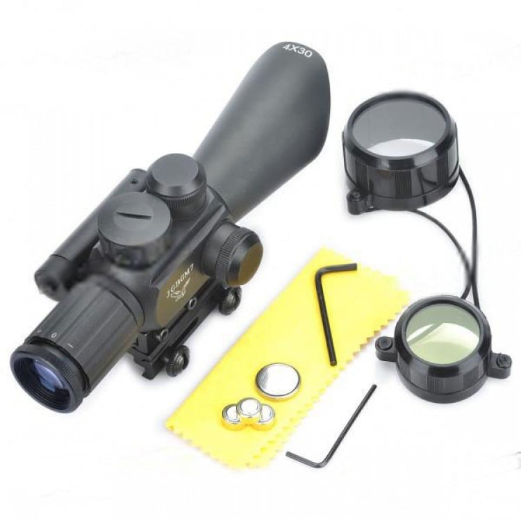 4X 30mm Red/Green Mil-Dot Reticle Rifle Scope with Gun Mount - Black