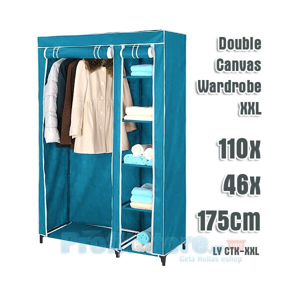 Διπλή Φορητή Υφασμάτινη Ντουλάπα με Μεταλλικό Σκελετό και 5 Ράφια Αποθήκευσης - Storage Wardrobe