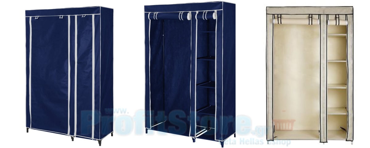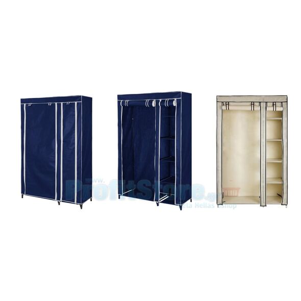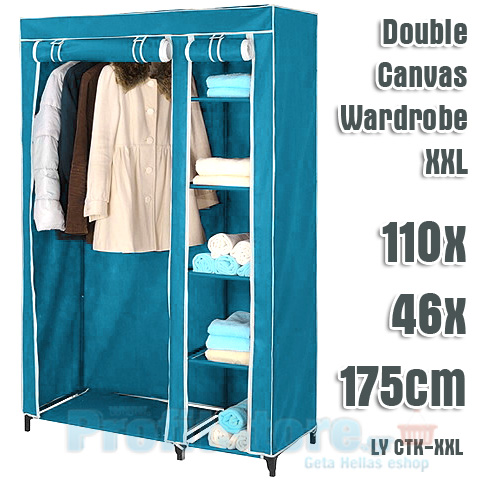 Διπλή Φορητή Υφασμάτινη Ντουλάπα με Μεταλλικό Σκελετό και 5 Ράφια Αποθήκευσης - Storage Wardrobe