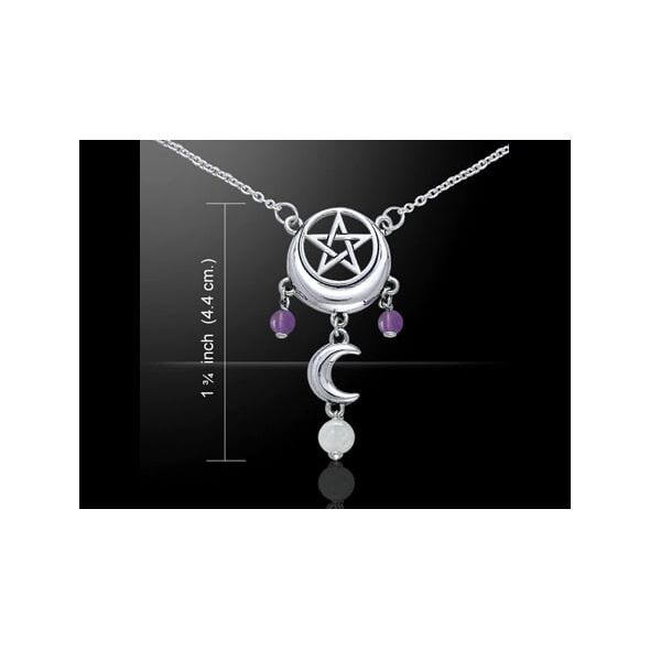 Η Σελήνη, αρχαίο σύμβολο ομορφιάς, διαίσθησης και δύναμης ενώνεται με την πεντάλφα, σύμβολο αιώνιας προστασίας και επιθυμίας. Το φυλαχτό αυτό ενδυναμώνεται από τον Αμέθυστο, λίθο της ομορφιάς και της γοητείας και τη Φεγγαρόπετρα που ενισχύει τις ψυχικές δυνάμεις.